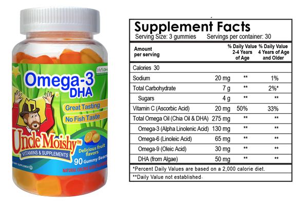 Parents, we know how difficult it is to provide children with a sufficient amount of Omega-3 fatty acids from diet alone. Uncle Moishy Omega-3 DHA Jellies will provide your child with the essential daily serving of Omega-3 needed for healthy growth and development that your child may not be getting from diet alone. It’s packed with a variety of delicious fruit flavors. No fishy taste!